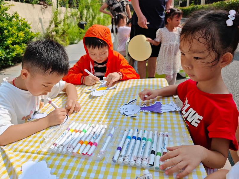 “手绘小人贴地球”环节里,孩子们用画笔在事先画好的小人图上颜色,然后粘贴在地球轮廓,用童趣行动诠释“我是中国娃,说好普通话”的理念。不少社区家长还带着孩子一起参与,在互动中感受语言文化的魅力。