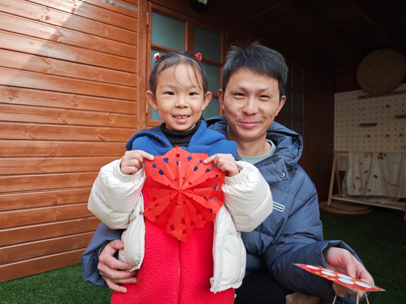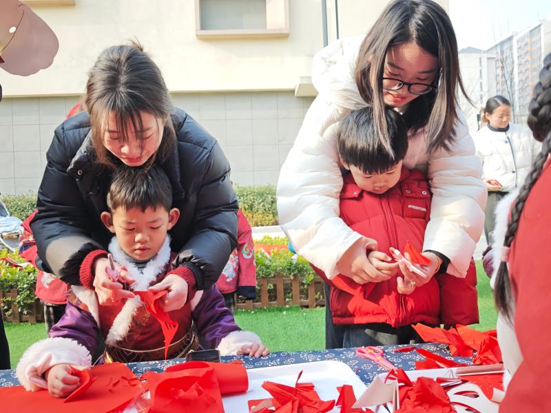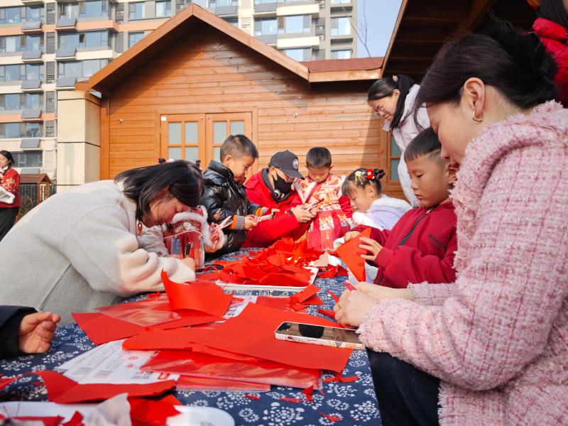 活动现场,非遗老师手把手指导孩子们体验传统技艺。孩子们和爸爸妈妈默契协作,一双双小手在彩纸、剪刀间灵活穿梭,认真跟着老师学习折叠、裁剪的技巧。不一会儿,一件件充满童真的手工作品便跃然眼前。