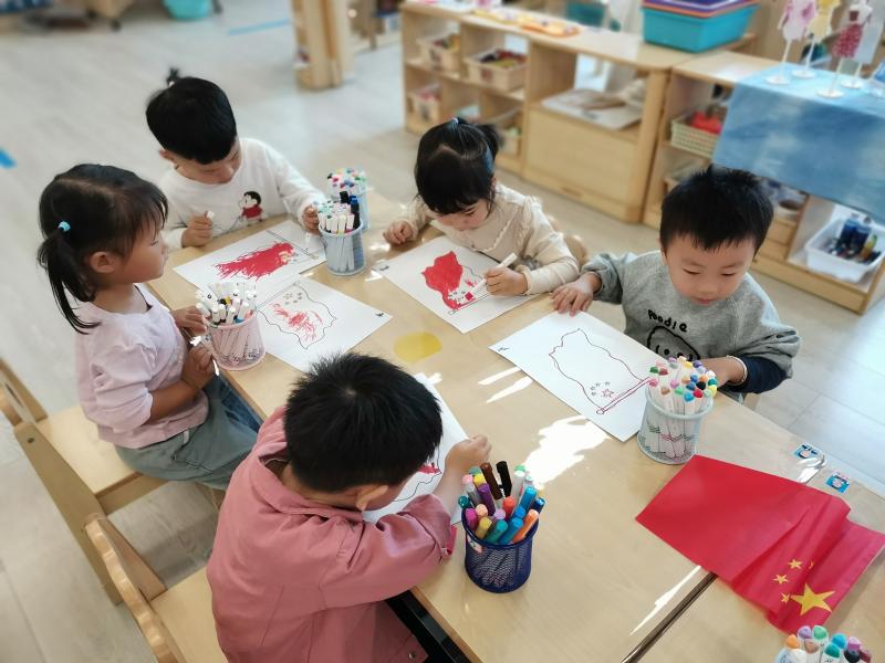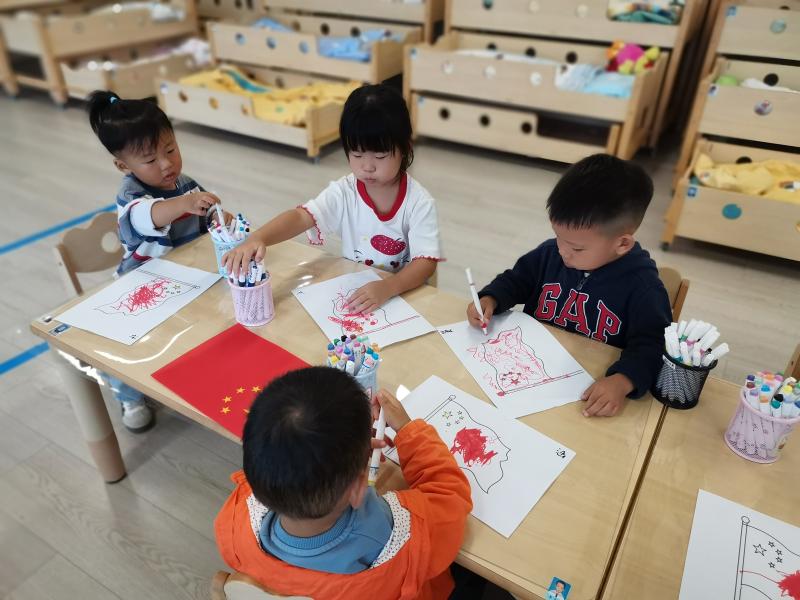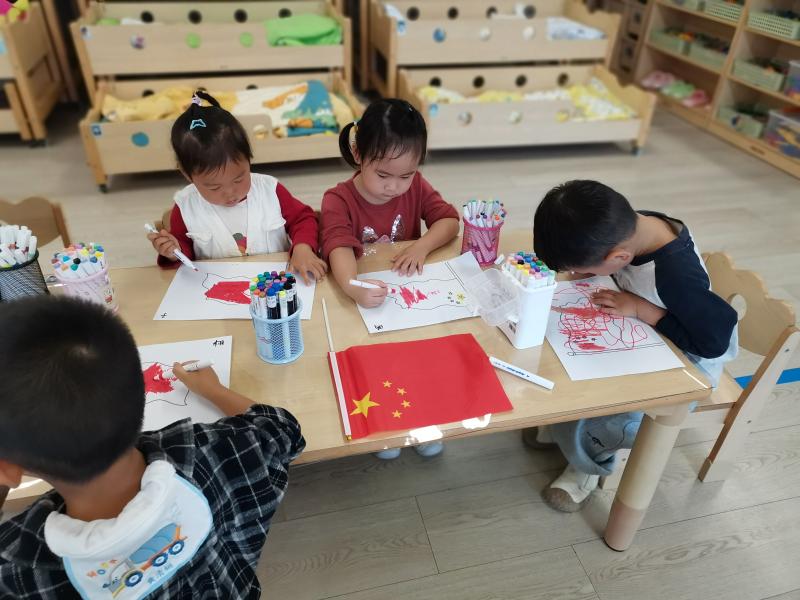 活动最后,孩子们举起自己绘制的国旗,脸上洋溢着自豪的笑容,还跟着老师一起轻声唱起了《国旗国旗真美丽》。此次活动不仅锻炼了幼儿的动手能力,更让爱国的种子在孩子们心中悄然发芽,为他们的童年播下了热爱祖国的美好种子。