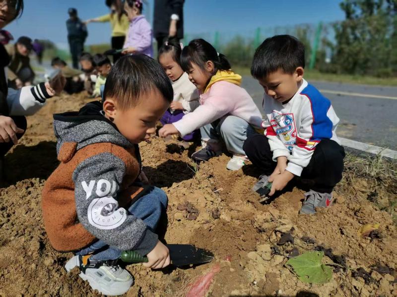 一进农场果蔬区,同学们就被满眼的翠绿与斑斓吸引。在农场工作人员的指引下,大家弯腰观察挂在藤蔓上的黄瓜、藏在叶子下的西红柿,还用小手轻轻触摸带着绒毛的冬瓜。当看到地里冒出的胡萝卜缨子,大家好奇地追问“胡萝卜埋在土里怎么长大”,工作人员耐心讲解后,又带着大家来到红薯地。随着老师一声“开始挖薯”,同学们手持小铲子干劲十足,有的蹲身刨土,有的合力拔薯,当一个个圆滚滚、红彤彤的红薯被挖出来时,田间瞬间响起阵阵欢呼,泥土沾满小手也全然不顾。