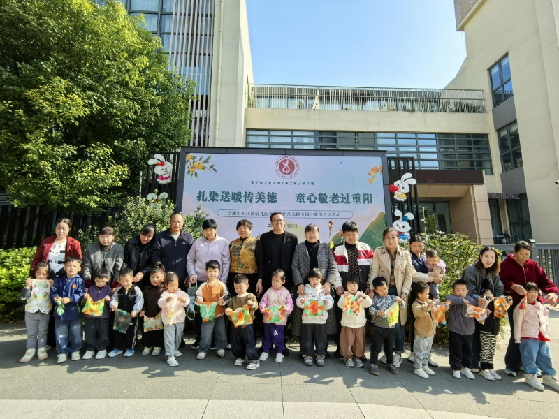 岁岁重阳,今又重阳。为传承 “孝亲敬老” 的中华传统美德,结合《3~6 岁儿童学习与发展指南》“引导幼儿了解社区、增强归属感” 的要求,2025年10 月 28日上午,合肥市长江路幼儿园教育集团淮北路分园小班组开展 “扎染送暖传美德 童心敬老过重阳”社区活动,小班组全体师幼、行政人员及保安共同参与,在温情互动中播撒感恩种子。