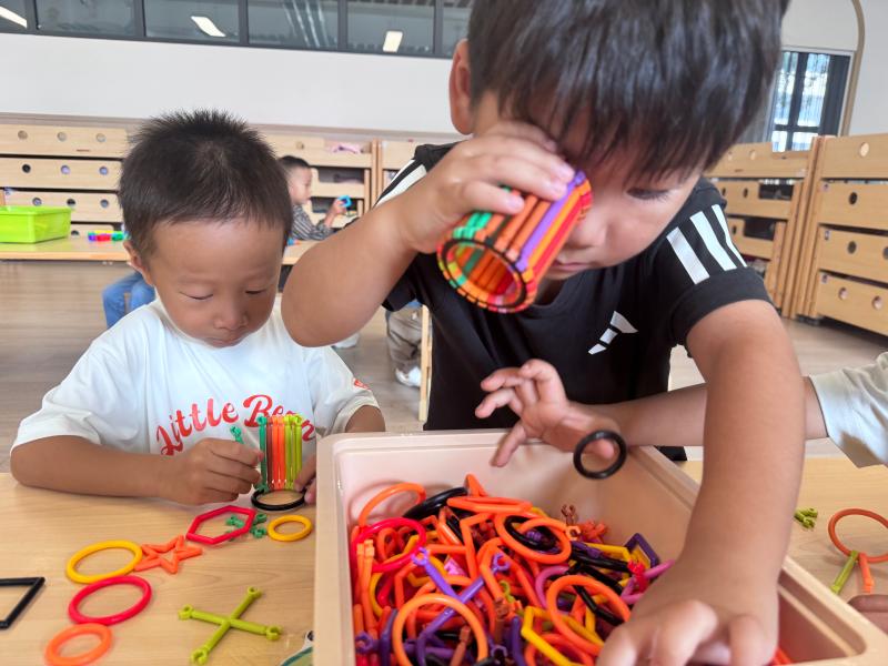 活动中,班级设置了“建构乐园”“创意美工”“益智天地”等多个区角。在建构乐园,孩子们化身小小建筑师,用积木搭建出一座座想象中的“城堡”“汽车”;创意美工区里,他们拿起画笔、黏土,尽情挥洒创意,制作出属于自己的艺术作品;益智天地中,各类有趣的益智玩具让孩子们在动手操作中锻炼思维能力。孩子们在各个区角间穿梭,遇到问题时,会主动和同伴交流、向老师请教,在一次次尝试中,不仅提升了动手能力,更学会了分享与合作。看着孩子们专注又快乐的神情,老师们也倍感欣慰。