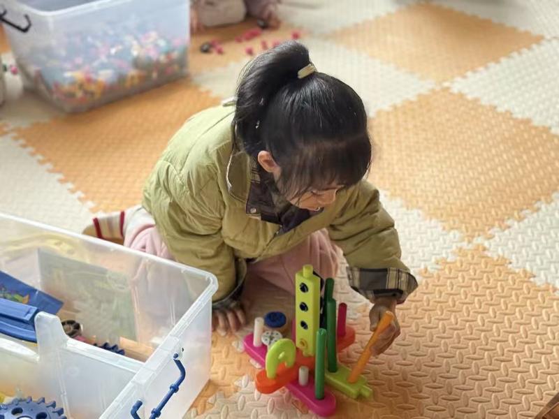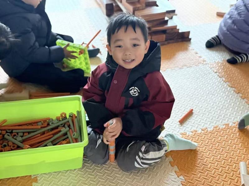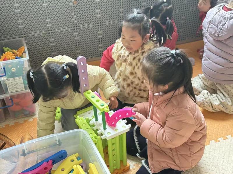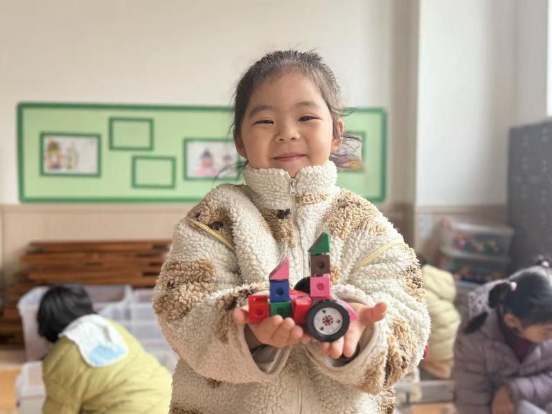 积木碰撞的清脆声响里,建构室成了孩子们的乐园。一双双肉乎乎的小手,正小心翼翼地将积木块垒高、拼接,搭出一座座奇奇怪怪又可可爱爱的“建筑”。