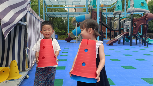 在京福幼儿园小二班里,当孩子们已经能自如地骑行滑板车后,他们渴望新的挑战。很快,他们从材料箱里发现了彩色障碍桶,一个绕桶骑行的新游戏诞生了!孩子们兴奋地摆放好桶,跃跃欲试。