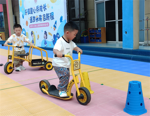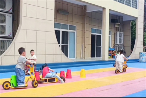 带着这些自己讨论出来的“安全秘诀”,孩子们再次投入了绕桶骑行游戏。这一次,小骑手们明显放慢了速度,小心翼翼地控制着滑板车,彼此间也注意保持着合适的距离。神奇的事情发生了——大家绕桶时稳稳当当的,摔倒的情况几乎没有了!成功的喜悦洋溢在每个人脸上,孩子们玩得更专注、更尽兴,操场上充满了欢乐的笑声和稳稳前行的身影。