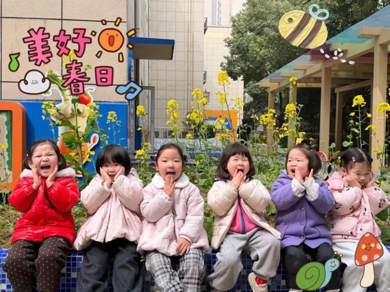在班级种植角里,金黄的油菜花竞相开放,孩子们围坐在花丛旁,有的托着腮认真观察,有的忍不住露出灿烂笑容,还有的对着镜头做起了可爱的鬼脸。他们近距离感受着花朵的绽放,在自然中发现春天的色彩与美好,小小的身影与明媚春光相映成趣。