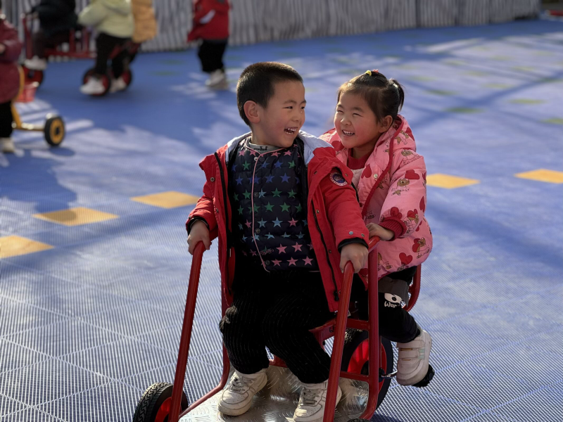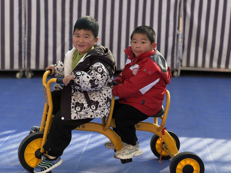 骑行正式开始,孩子们或独自专注把控方向,小脚丫一下下用力蹬着踏板,车轮转动带起轻快的风;或两两合作,前面的 “小骑手” 认真掌握平衡,后座的小伙伴紧紧依偎,清脆笑声随着车子前行飘向远方。遇到转弯,有的孩子小心翼翼调整方向,成功 “突围” 后,扬起小脸笑出小酒窝;碰到 “小障碍”,大家也不慌乱,互相喊着 “加油”,合力跨过难关。