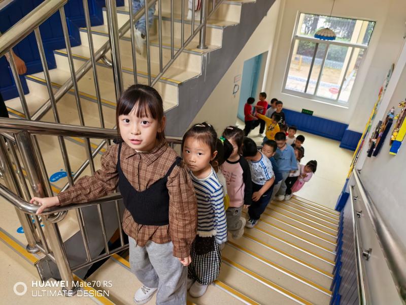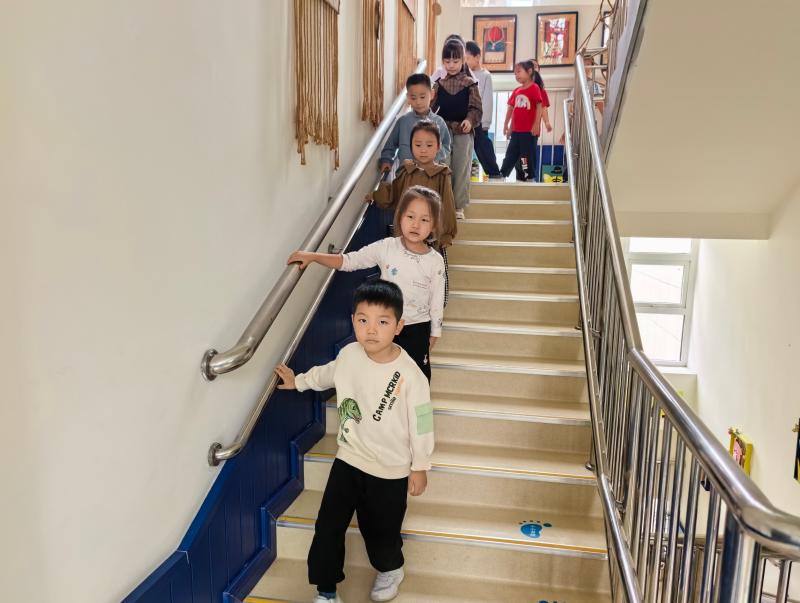 演练中,大三班的孩子们在老师的有序组织下,沿着楼梯右侧,手扶栏杆,保持安全距离,有条不紊地进行疏散。从他们专注的神情和规范的动作中,不难看出日常安全教育的扎实成效。