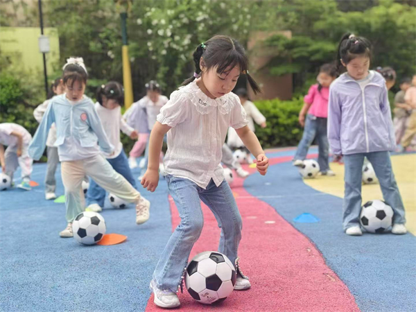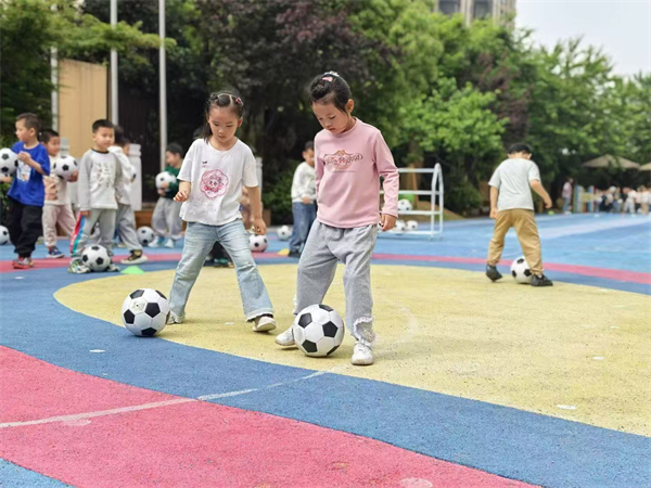 在合肥市长江路幼儿园教育集团天成分园的户外操场上,一场充满活力与欢乐的足球活动正精彩上演。近日,大四班的孩子们化身 “足球小将”,在阳光照耀的绿茵场上,尽情释放运动热情,用灵动的身影和欢快的笑声,书写属于他们的足球篇章。