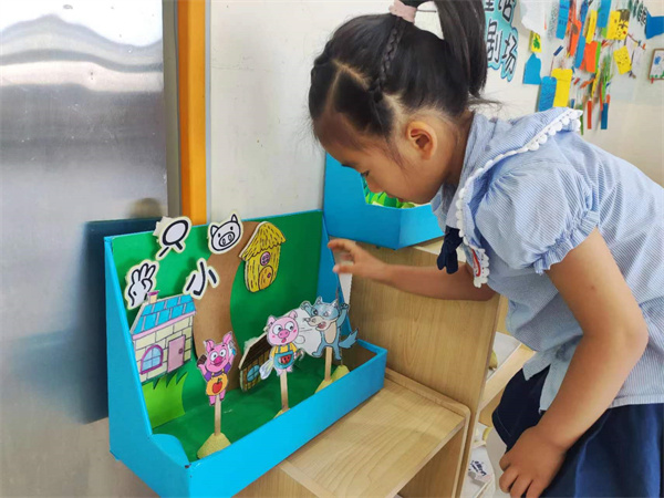 进行表演之前,理解故事是第一步,虽然幼儿对《三只小猪》比较熟悉,但为了让幼儿对故事内容有整体的感知;教师用了提问的方式,帮助幼儿对故事人物、情节、典型的对话有更深入的理解。在整个过程中教师加入语言和动作对故事的表达。