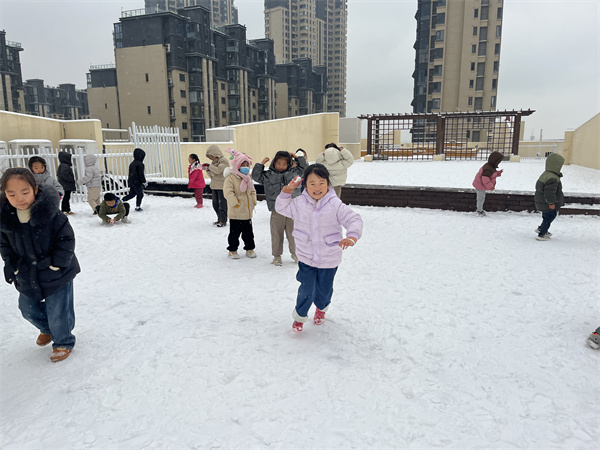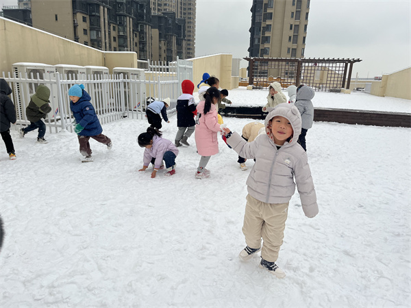 一场大雪过后,把幼儿园打扮得仿佛童话世界,给孩子们带来了无限的遐想!爱玩是孩子的天性,在老师的带领下,孩子们进行了一次快乐的打雪仗活动!当孩子们投入到雪世界的那一刻,他们立刻融入雪的怀抱,他们追逐嬉戏、欢呼跳跃,幼儿园顿时变成了欢乐的海洋。他们用自己独有的内在感受,尽情地体验着洁白的雪花带给他们的无限乐趣。