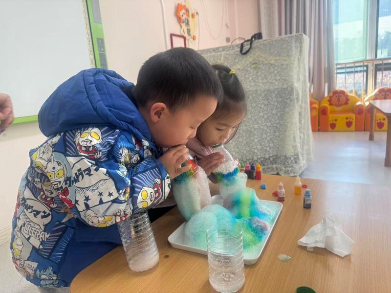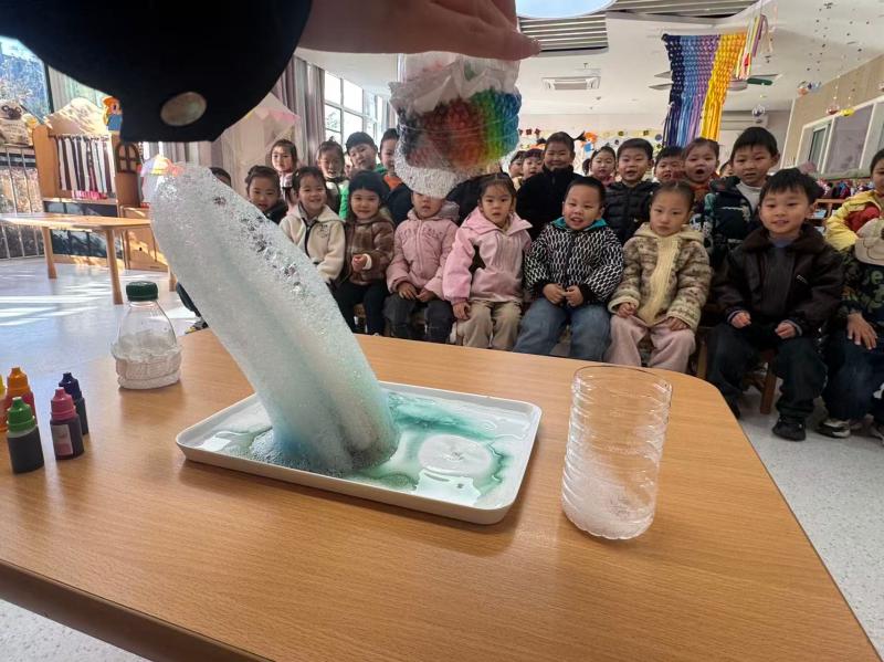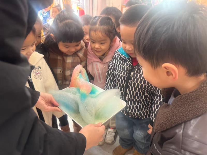 阳光里的彩色泡沫、孩子们亮晶晶的眼睛,还有老师温柔的引导,让这场简单的科学实验变成了充满童趣的探索之旅。孩子们在亲手操作中感受着科学的奇妙,也在欢声笑语里,把对世界的好奇悄悄种进了心里。