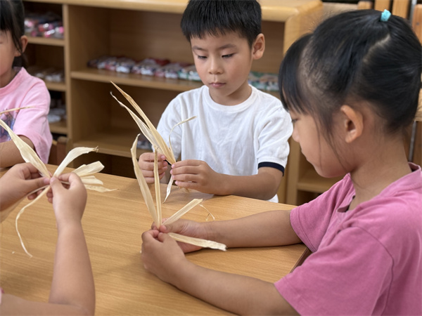 活动结束后,孩子们的玉米皮金鱼作品被展示在班级各处,成为教室里一道独特的风景线。此次玉米皮编织活动,不仅锻炼了幼儿的手部精细动作和动手能力,还让孩子们认识到普通的农作物废弃物也能变废为宝,培养了他们的环保意识和创造力。让孩子们在与自然的互动中收获知识与乐趣,传承传统手工编织文化。