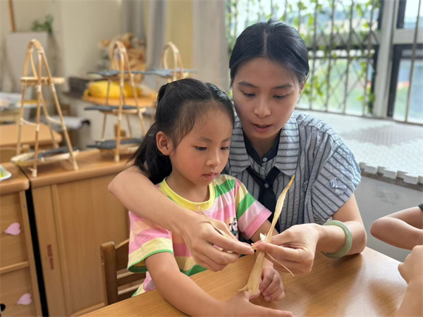 编织是我国的特色民间文化,集结了“编”和“织”的技艺,是中华民族的传统工艺,也是一项精细的手工活动。为了让幼儿受到传统文化的熏陶,让孩子们的动手能力得到提高。因此合肥市长江路幼儿园天成分园大三班将编织活动有效地融入到班级课程中,一场妙趣横生的玉米叶金鱼编织活动,大三班教室温馨开展。