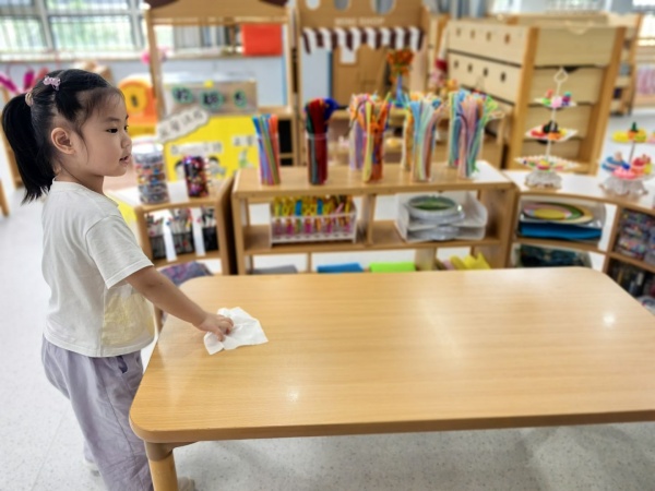 中班组开展的“卫生好习惯”活动同样精彩。“我是卫生小卫士”环节中,小朋友们纷纷拿起清洁工具,认真地擦桌子、扫地、整理玩具,亲身体验劳动的乐趣与意义,逐渐树立起劳动意识和良好的卫生习惯。而在“卫生习惯大讨论”中,借助生动的图片和视频,孩子们踊跃发言,从勤洗澡、勤换衣,到饭前便后洗手,再到保持室内通风,他们对卫生习惯的理解越来越深刻。