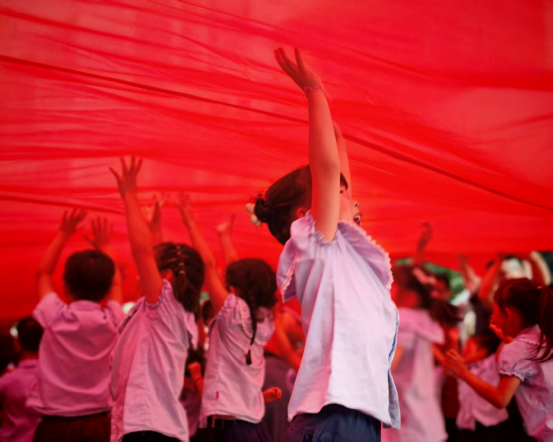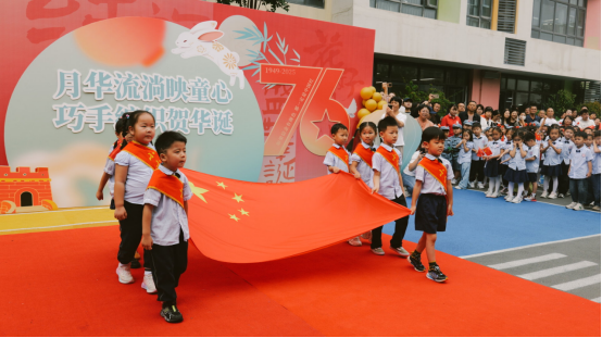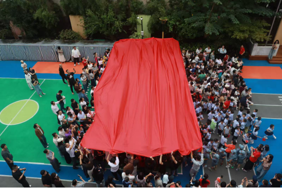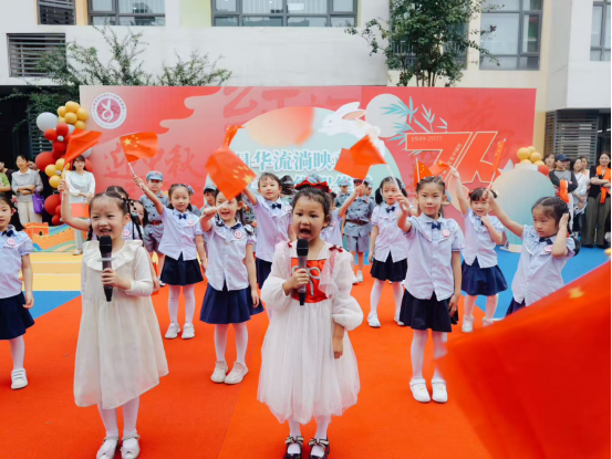 “五星红旗迎风飘扬,胜利歌声多么响亮......”清脆的童声回荡在校园上空。在歌声中,一面巨大的红旗在孩子们头顶缓缓传递。孩子们挥舞着手中的小国旗,整个操场瞬间成为红色的海洋。这一刻,爱国情怀在每一颗童心中激荡。