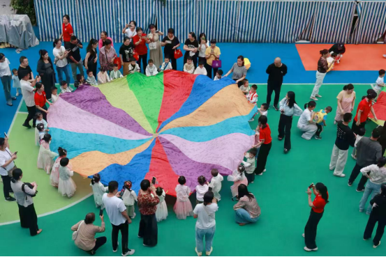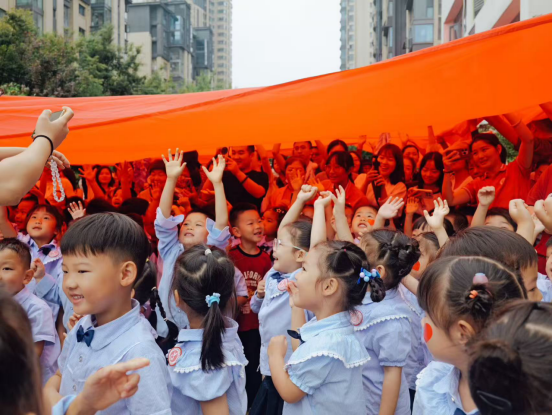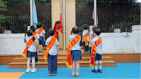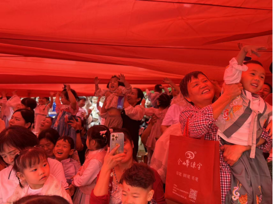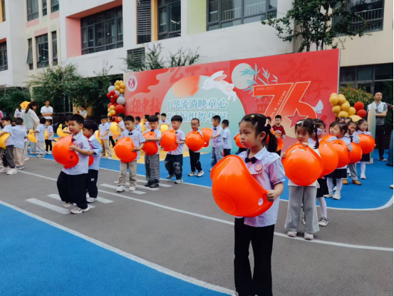 生在红旗下,长在春风里,目光所至皆为华夏。长幼天成的师幼及家长们昂首挺胸,行注目礼,齐唱国歌,拉开国庆庆祝活动的序幕。国旗升起时,是信仰在小小的胸膛里升腾,目光追随处,是敬意在稚嫩的眼眸中流淌,国歌奏响间,是爱国的种子在童年的土壤里扎根。孩子们挺直腰板,把对祖国的崇敬,藏进每一次认真的凝望,把对未来的向往,融进每一个专注的模样。