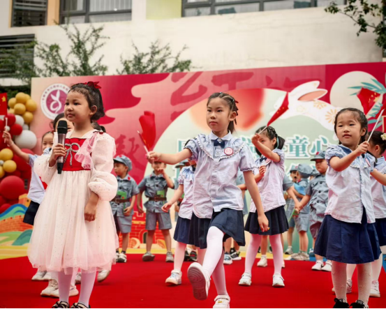 瞧,一群可爱的小宝贝们,带着这份光芒走上舞台的中央。他们用稚嫩的脚步,讲述红星下的故事;用甜甜的声音,传递红星里的力量。生动的表演让孩子们直观地感受到了英雄的崇高与祖国的伟大,爱国情怀在童心中激荡。
