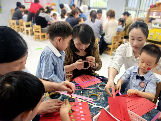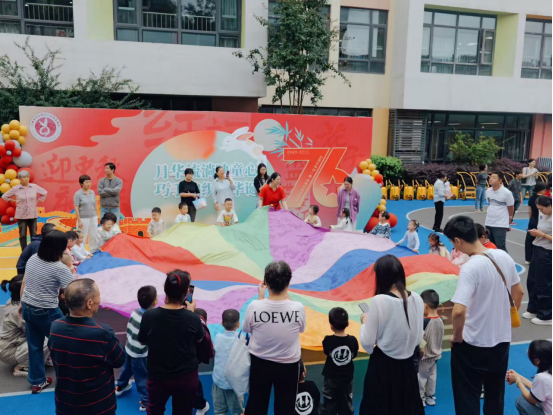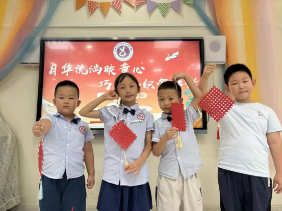 此次“月华流淌映童心,巧手编织贺华诞”活动,不仅是长幼天成双节庆祝系列活动中浓墨重彩的一笔,更是幼儿触摸文化、践行传承的生动载体。从小班亲子合作时,彩绳在“月亮”纸板上穿梭的专注;到中班孩子为中国地图拼贴彩纸时,口中念叨的“这是我们的家”;再到大班幼儿为竹编挂饰粘贴五角星时,眼里闪烁的认真——孩子们在亲手创作中感受传统技艺的温度,在操场观展、情景剧表演的沉浸式体验里,读懂中秋“团圆”的温暖与国庆“爱国”的赤诚。两种情感在孩子们的笑声里、作品中深度交融,如同种子般扎根童心,为他们的童年镌刻下深刻而珍贵的成长印记。