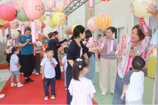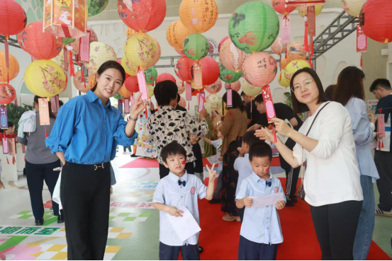 编织活动意犹未尽,各年级组又开展了丰富多彩的延伸活动。大班幼儿在科学活动《月亮的变化》中探索宇宙的奥秘;中班幼儿兴致勃勃地参与“猜灯谜”,在趣味问答中增长智慧;小班幼儿则身着传统汉服,稚嫩的步伐与华美的服饰相得益彰,展现出中华传统服饰之美。整个幼儿园变成了一个欢乐的海洋,歌声、笑声、欢呼声交织成一曲动人的双节赞歌。