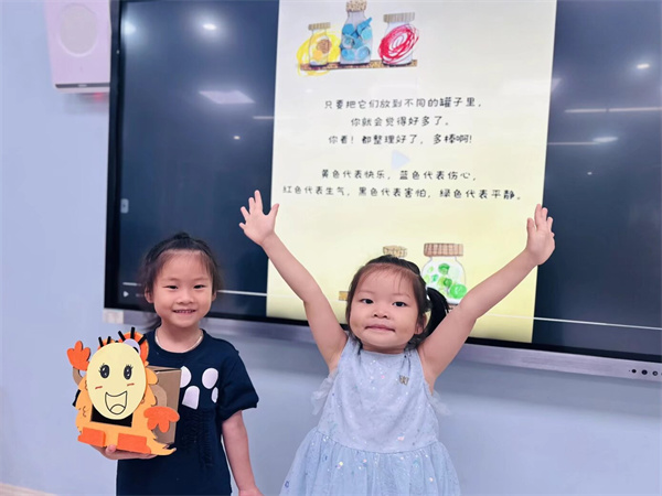 中班年级组巧妙地将情绪认知与艺术表达相结合。通过绘本阅读《我的情绪小怪兽》,理解情绪就像不同颜色的小怪兽,多种多样且各有特点。孩子们还化身小小画家,用斑斓的色彩描绘自己的心情变化,分享让自己开心起来的小秘诀。这一过程不仅让孩子们学会了辨识复杂情绪,更引导他们主动寻找保持积极心态的方法。