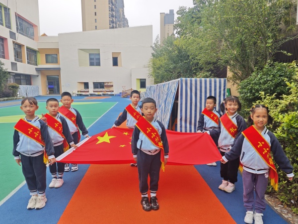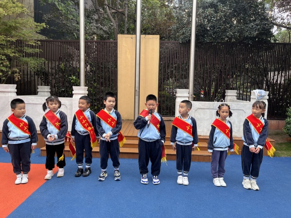 本次的升旗手是来自大六班8位小朋友担任升旗手,他们身着整齐服装,手护国旗,迈着有力步伐走向升旗台。《义勇军进行曲》响起,五星红旗冉冉升起,全体师幼肃立行注目礼,操场沉浸在肃穆氛围中。国旗升起后,小小升旗手依次登台,进行自我介绍与才艺展示。“大家好,我是大六班的小朋友,我要给大家朗诵一首《悯农》,谢谢农民伯伯种出香喷喷的米饭!”孩子们吐字清晰、声音洪亮,每一个动作、每一句表达都充满童真与真诚,赢得阵阵掌声。
