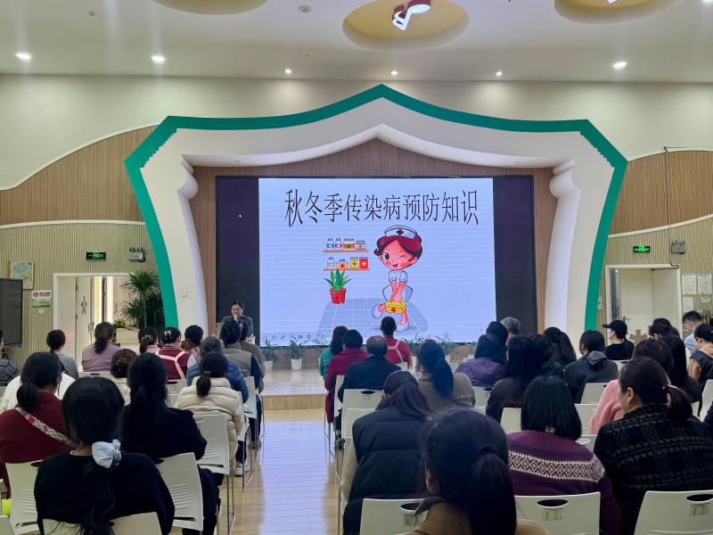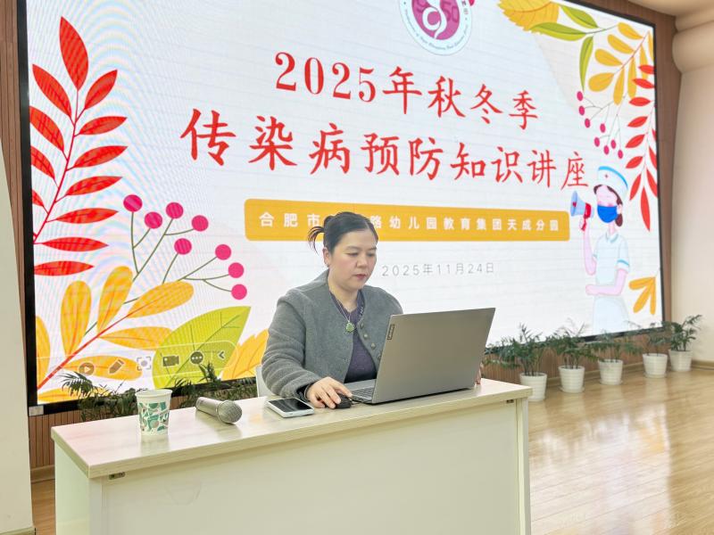 为科学应对秋冬季传染病高发情况,筑牢校园健康防线,2025年11月24日下午,合肥市长江路幼儿园教育集团天成分园特邀请庐阳区四里河卫生服务中心刘国敏医生,此次培训面向托班、小班新生家长以及教职工代表开展“幼儿园秋季传染病的预防”专题讲座。