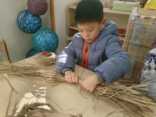 编织是我国民间文化的璀璨瑰宝,是传统工艺与自然材料碰撞的智慧结晶。编织是镌刻在民俗里的智慧,是自然材料与手工技艺的诗意联结。为让幼儿亲近乡野材料、触摸传统工艺的肌理,感受传统工艺的温度、解锁自然材料的创意玩法,合肥市长江路幼儿园天成分园大一班以“稻禾”为载体,开启了一场充满田园气息的草编挂饰编织活动。