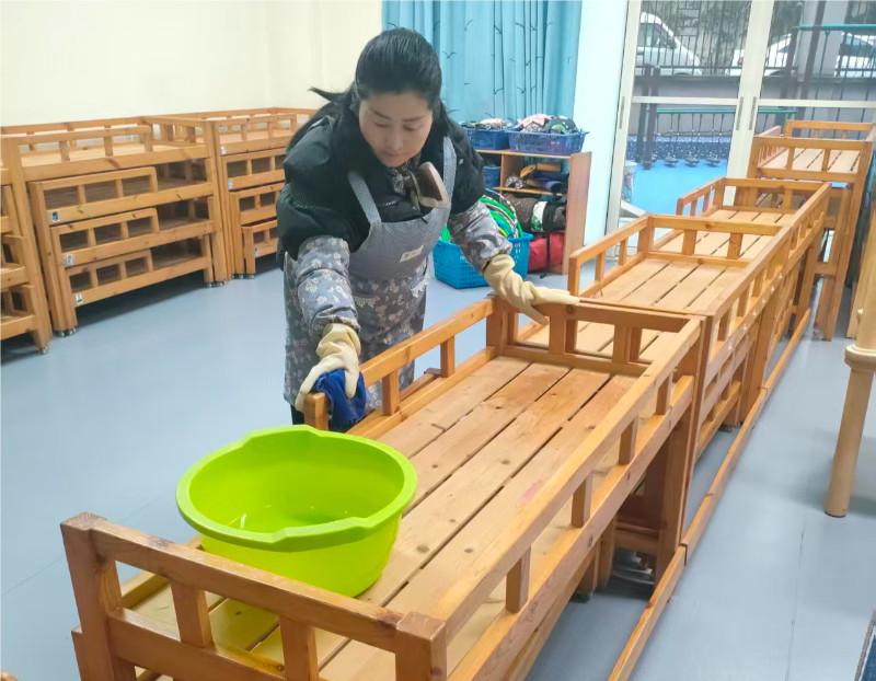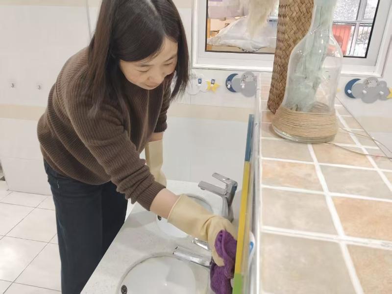 集团各园严格按照统一部署,迅速行动、分工协作,掀起了一场校园环境消杀的热潮。在室内外环境清洁环节,全体教职工化身“环境卫士”,对园内进行拉网式清扫。从活动室的桌椅板凳、玩具器械,到午睡室的床铺、通风设施,再到走廊、楼梯、盥洗室等公共区域的每一处角落,大家都细致擦拭、全面清理,不放过任何一处卫生盲区。户外场地的大型玩具、运动器械也逐一进行冲洗、擦拭和整理,确保幼儿活动空间干净整洁。