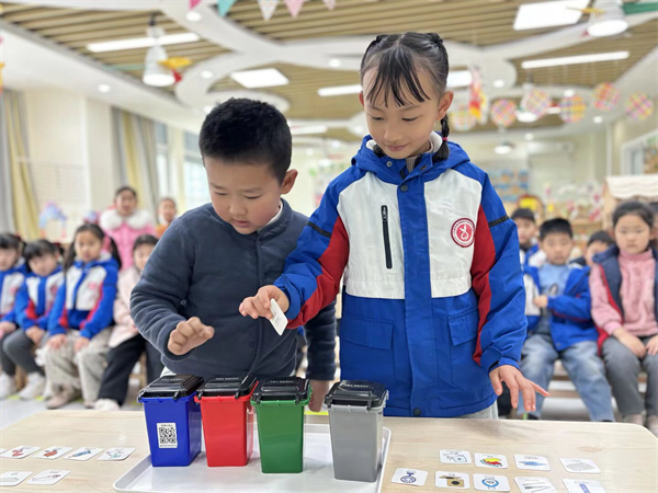 作为新学期开启的重要一课,各班教师根据幼儿年龄特点,精心设计了不同主题的活动,将安全与健康的种子播撒在每个孩子心中。小班聚焦“防拐骗”,中班关注“食品安全”,大班围绕“心理健康”,帮助幼儿提升自我保护意识与积极心态。安全与健康的守护之外,环保意识的培育同样是新学期的重要一课。托小班幼儿在老师的引导下认识垃圾分类标识,学习分类知识;中班幼儿通过实践活动养成分类好习惯;大班幼儿则化身环保设计师,巩固分类知识,争做环保小卫士。
