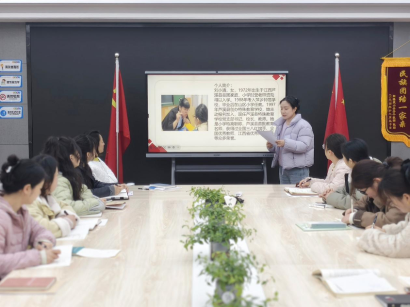 师德学习环节,老师们以“全国教书育人楷模”刘小清同志为精神标杆,深入学习其坚守特教岗位近30年,用“爱心、真心、耐心”浇灌每一朵“特殊”之花的感人事迹。刘小清同志坚持特色教育办学,创新“教康一体化”美术教育实践模式,关爱特殊学生家庭,近年来为困难学生家庭捐款捐物累计4.8万余元;她耐心指导聋哑孩子发音,用“传帮带扶放”培养青年教师,用坚守与创新助力学生成长就业,200多幅学生美术作品在各级比赛中获奖,5位听障孩子凭美术专长考上大学。老师们深刻感悟她“大爱无声、用心育人”的师者情怀,此次学习强化了全体教师以高尚师德立身、以精湛业务立业的责任担当,推动师德师风建设走深走实,为幼教事业筑牢思想根基。