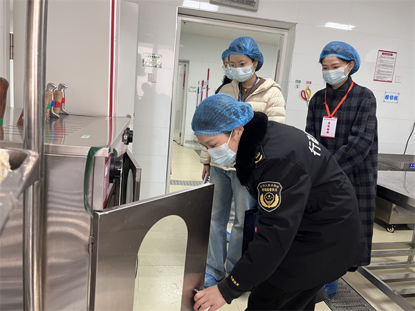 食品安全是幼儿园日常管理的“底线”和“红线”,为切实筑牢幼儿园食品安全防线,保障在园幼儿的健康成长,2026年3月9日上午,大杨镇市场监督管理所许鹏以及第三方专业机构公司的工作人员莅临长江路幼儿园天成分园进行食品安全专项检查工作,食品安全总监陈晓晔和食品安全员王瑞芬老师全程陪同检查。