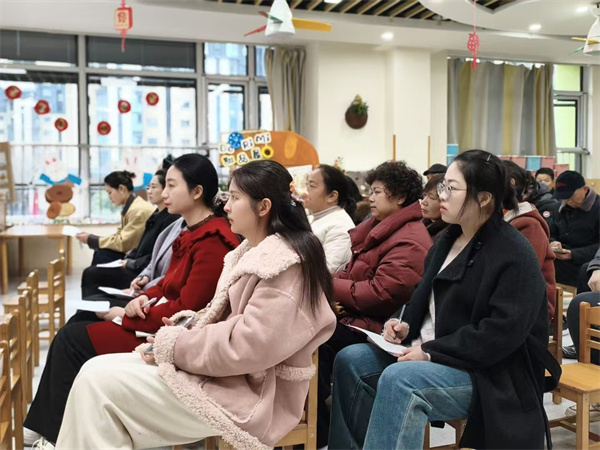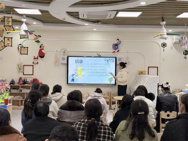 各班教师首先对上学期工作进行全面回顾与总结。过去一学期,幼儿园围绕幼儿生活习惯养成、社交能力培养、兴趣潜能开发等核心目标,开展了丰富多彩的主题教学、户外游戏、节日实践等活动。孩子们在轻松愉悦的氛围中,逐步养成了独立自理、礼貌待人的良好习惯,动手能力、表达能力与合作意识均得到显著提升,在点滴成长中展现出蓬勃向上的精神风貌。接着介绍幼儿在园一日生活、学习游戏与成长点滴,围绕习惯养成、自理能力、社交发展、春季传染病预防、饮食健康、安全防护等家长关切内容展开讲解。小班和托班主要以生活自理习惯,指导家长在家鼓励幼儿独立进食、自主收纳玩具,情绪表达引导,教家长通过亲子共读、耐心倾听,帮助幼儿学会用语言表达情绪,建议家长多带幼儿参与同伴互动,培养分享意识,为融入集体生活打基础。中班侧重点以能力提升,兴趣拓展为主,培养幼儿认知、社交、动作能力快速发展。通过亲子拼图、绘本阅读等活动,延长幼儿专注时长,激发探索欲;引导幼儿学会合作、协商与解决冲突,提升集体生活适应力;结合幼儿个性,支持幼儿参与绘画、运动等特色活动,保护好奇心与创造力。大班则以幼小衔接为主,教师围绕幼小衔接的核心内容,从学习习惯、知识储备、心理建设等方面展开讲解。学习习惯上,重点强调专注力、任务意识与自主学习能力的培养;知识储备上,针对数学认知、语言表达、前书写准备等方面,给出科学的家庭训练建议;心理建设上,引导家长帮助幼儿建立对小学的向往与自信,缓解入学焦虑认真倾听、积极交流,进一步理解家园协同的重要意义。家长认真倾听、积极交流,更有家长分享育儿心得与老师进行互动,现场氛围温馨而热烈。