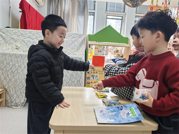 中班的宝贝们拿起画笔,把自己最爱的健康餐点画成一幅幅充满创意的图画,叽叽喳喳地分享着“胡萝卜能让眼睛更亮”“牛奶能让骨骼更强壮”的小知识;在“迷你超市”角色扮演里,他们化身小小顾客和收银员,认真翻看食品包装,学着辨认生产日期和保质期,把过期、三无食品统统“拒之门外”。