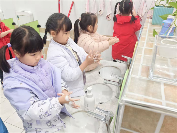 大班哥哥姐姐则在“情景辨析大闯关”里,围着图片热烈讨论“路边摊的炸串能不能吃”“刚洗干净的水果可以直接咬吗”,把生活里的饮食安全小陷阱一一识破;还开展了“七步洗手法”小竞赛,认真搓洗每一根小手指,争当“卫生小标兵”,在整理餐桌、摆放餐具的练习中养成优雅的用餐礼仪。