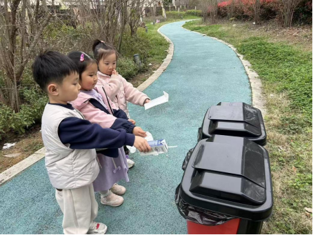 在“环保小卫士行动”中,孩子们主动捡拾草坪上的纸屑、塑料瓶,并分类投放到垃圾桶。他们用小小的行动践行环保理念,守护着这片充满生机的自然天地,争做爱护环境的“小卫士”。