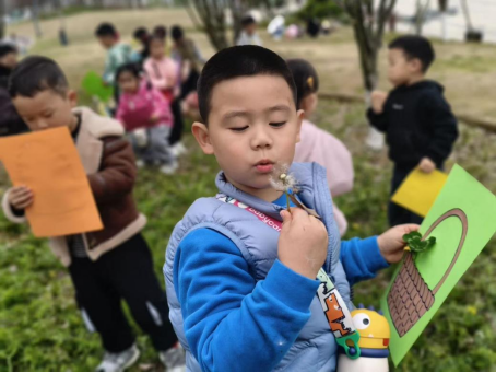 “快看!蒲公英飞起来啦!”不知是谁喊了一声,沿路上一团团白色的小绒球正乘着风飘舞。孩子们的眼睛瞬间亮了起来,有的拍着小手欢呼,有的笑得前仰后合,小脸蛋上满是惊喜。“它像小伞一样!”“它要去旅行啦!”稚嫩的声音里,藏着对自然最纯粹的喜爱。