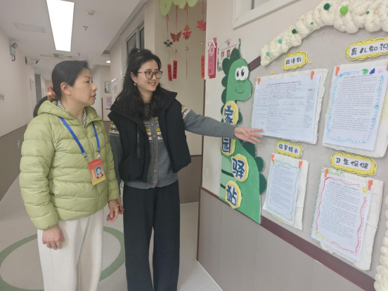 随后,钱督学围绕办园规范、食品安全、校园安全等核心工作展开细致核查。在规范办园方面,认真查看园区收费公示、园务公开等内容,逐项核对信息公示的规范性与透明度,对园所坚持阳光办园、透明管理的举措予以肯定。在食品安全管理上,通过“明厨亮灶”实时查看食堂后厨操作流程,细致检查食材采购、储存加工、食品留样、餐具消毒等关键环节,再三叮嘱后勤工作人员严守食品安全底线,全力保障幼儿饮食健康与安全。同时,对校园消防设施、户外游戏场地、班级教学设施等进行全面排查,要求园所持续细化安全管理,做到隐患零容忍,为幼儿构建全方位安全防护网。