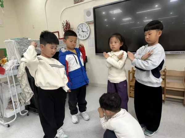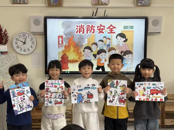 大班年级组以消防安全与防欺凌为切入点开展活动。幼儿在“消防知识我知道”环节认识消防设施与标识,学习基本防火常识;在“童心绘安全”活动中创作消防逃生宣传画,化身安全小宣传员分享知识。此外,通过 “防欺凌小卫士” 情景模拟与讨论,幼儿学会识别校园欺凌行为,掌握正确应对方法。