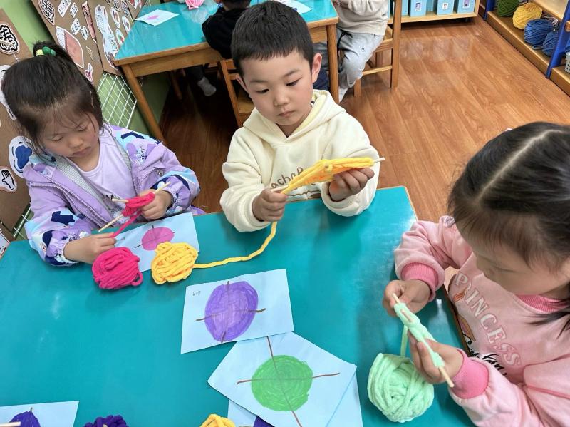 趣味编织活动具有操作性强、创意空间大的特点,能够激发中班孩子的兴趣和想象力。通过参与编织活动,孩子们可以锻炼手部精细动作能力,培养耐心和专注力。同时,编织过程中的创作过程也能激发孩子们的创造力和艺术素养,为他们的全面发展奠定基础。自从孩子们学会了“曼达拉编织法”,她们对编织游戏的探索兴趣更浓了,瞧!孩子们又有了许多新的想法与创意。