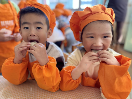 出锅啦!随着锅盖掀开,腾腾热气裹挟着浓郁的鲜香瞬间弥漫了整个活动室,一个个白白胖胖的饺子在盘中冒着热气,饱满圆润的模样格外诱人。小朋友们捧着自己包的饺子,大口品尝着,脸上洋溢着自豪与满足的笑容。