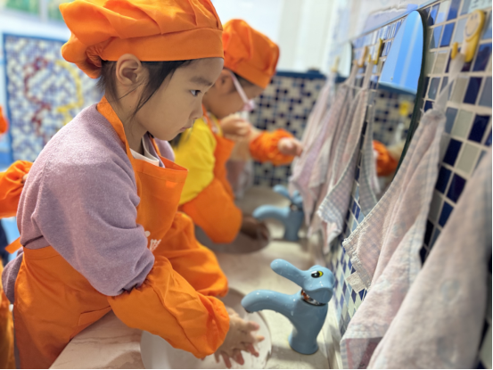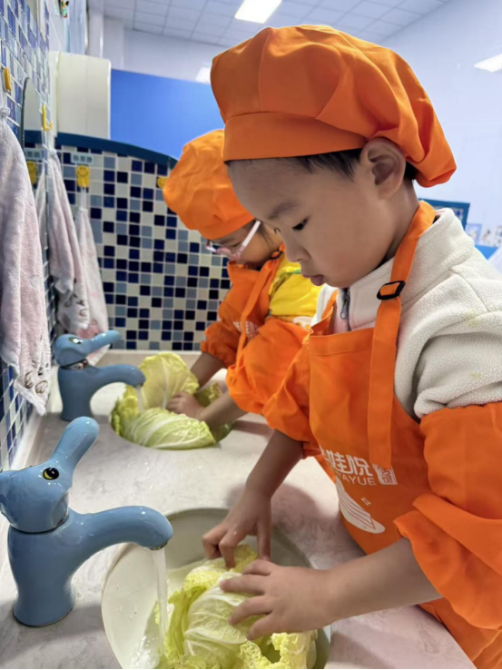 活动伊始,孩子们就主动加入了准备工作!大家挽起小袖子,在老师的指导下认真清洗大白菜,随后又按照七步洗手法仔细清洗双手,确保制作过程卫生又安全。接着,老师展示了丰富的食材和工具,鲜嫩的食材、圆圆的饺子皮让孩子们满眼好奇。老师还详细讲解了包饺子的技巧,从馅料的搭配到捏合的手法,小朋友们听得格外认真,盯着老师的示范动作,小脸上满是期待,迫不及待地想动手尝试。
