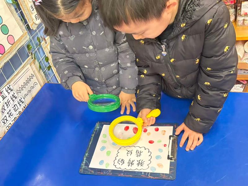 大家迫不及待地拿起放大镜,眯着眼睛仔细瞧。“我的指纹像小山丘!”“我找到弯弯的纹路啦!”惊叹声此起彼伏。孩子们你看看我的,我比比你的,发现原来每个人的指纹都不一样,这藏在指尖的小秘密,让大家兴奋不已。