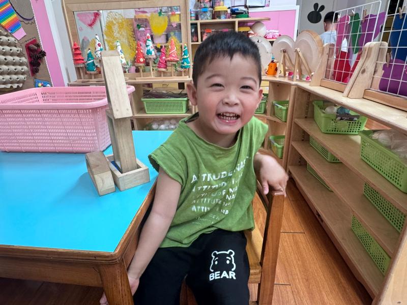 搭建过程中,孩子们不仅锻炼了手部精细动作与空间感知能力,更在合作中学会沟通与分享。“你扶着这边,我来放积木!”“我们可以再加个小塔楼!” 此起彼伏的交流声中,孩子们相互配合,共同完成作品。一个个造型各异的作品,不仅是孩子们创意的结晶,更承载着他们对世界的独特想象。