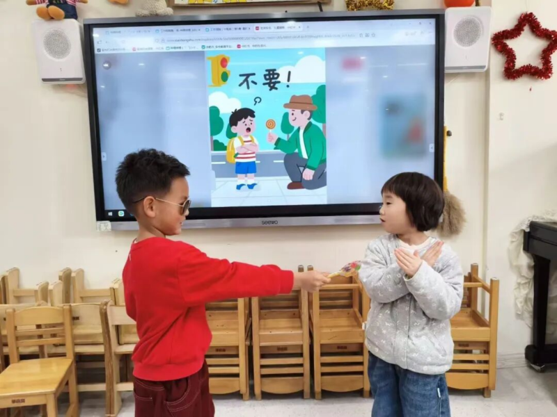 中班幼儿参与了“身体界限工作坊”,亲手为人体轮廓图“穿上”泳衣,明确标出隐私区域。孩子们还绘制了“安全圈圈图”,区分生活中可信任的求助对象。在模拟“公园里”“亲戚家做客”等情景的角色扮演中,幼儿练习使用“不要碰我!”“我要告诉老师!”等坚定语言,并学习迅速离开、寻求帮助的行为反应。