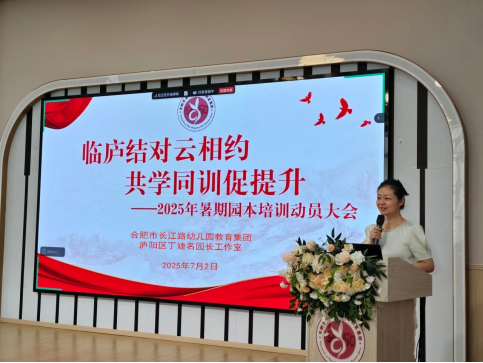 在庐阳区丁婕名园长工作室的带领下,合肥市长江路幼儿园教育集团于2025年7月2日以“云端+线下”模式开展暑期园本培训,庐阳区第三责任督学钱志梅、马丽园长亲临指导,临泉县机关幼儿园教育同仁云端参与。