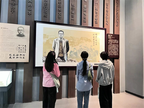 活动当天,团员教师们身着便装准时在安徽省名人馆前集合,共同拍摄集体照,定格此次文化之旅的起点。随后,教师们自由分组,有序进入馆内开启参观探索。安徽名人馆宛如一部厚重的“江淮史书”,从先秦诸子到近现代栋梁,完整呈现了皖籍英才的谱系。馆内详实的史料文献、生动的场景复原、鲜活的人物蜡像,以及全息投影互动、名人场景VR体验等创新展项,让教师们仿佛踏入星光璀璨的时空长廊,与古今贤达隔空对话。参观过程中,各小组精心拍摄名人经典场景复原画面及集体合照,用镜头记录下对安徽名人精神的感悟。