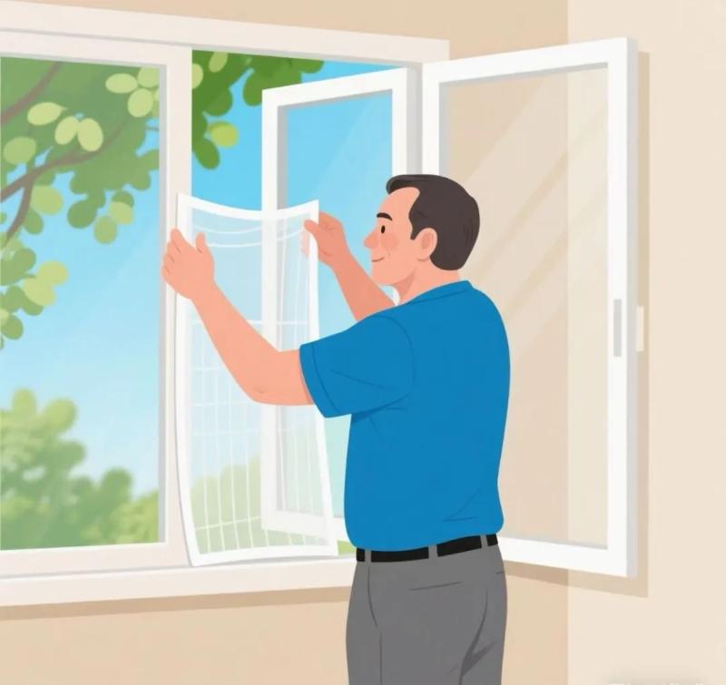 装:家居安装纱门、纱窗,睡觉时使用蚊帐。
