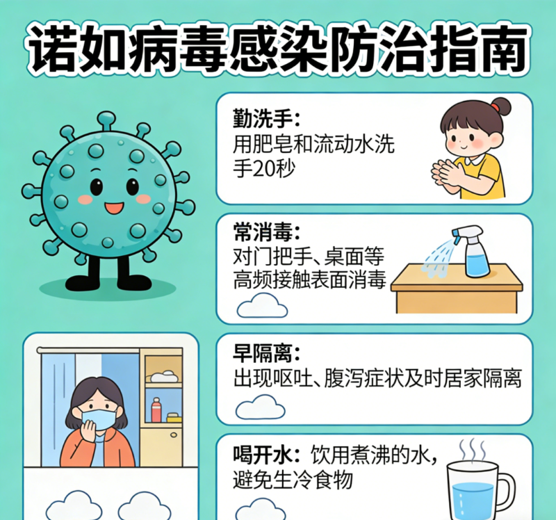 3.规范处置呕吐物:学校、家庭等场所一旦发生人员呕吐,应立即疏散身边人,在做好个人防护后,用含氯消毒剂对呕吐物进行规范覆盖和清理。