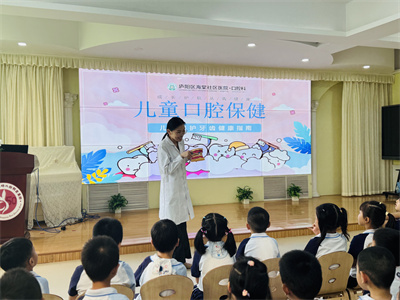 海棠社区卫生服务中心的口腔医生运用牙齿模型和PPT宣传课件,向大班孩子们讲解了口腔的结构和功能,展示了牙齿的形状和排列方式,详细介绍了健康的护齿方式等知识,通俗易懂且充满童趣的语言使孩子们深深意识到保护牙齿的重要性。